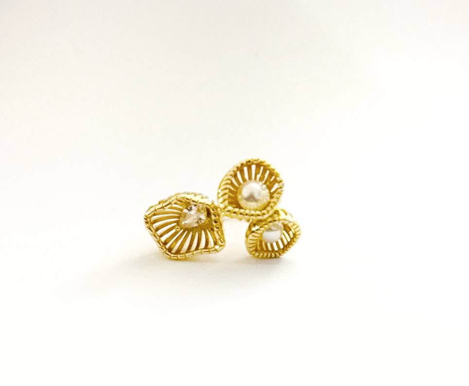 L’anello Arizona è un vero capolavoro di dettagli: tre petali sottili avvolgono delicatamente due perle bianche, simbolo di purezza e femminilità, mentre uno zircone trasparente a forma di goccia cattura la luce con ogni movimento, regalando un tocco di luminosità e fascino ineguagliabile.