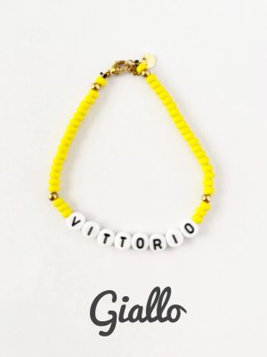 - Materiale: Perline colorate e dorate, lettere in resina, chiusura in acciaio placcato oro.