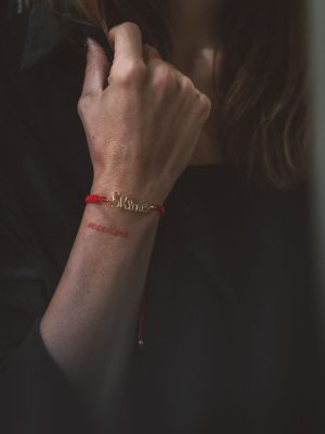 In questo bracciale si può scegliere il colore del cordoncino ( Nero, Viola, Rosso, Arancione, Rosa, Giallo ,Verde e Azzurro) e della scritta ( Argentata, Dorata, Rosata).