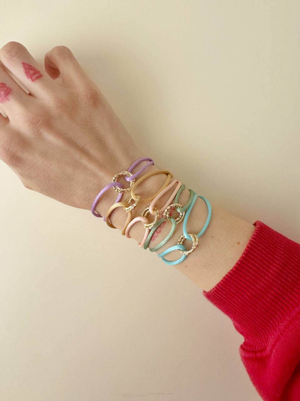 Realizzato con un resistente filo colorato che avvolge il tuo polso con sfumature brillanti. Al centro del bracciale, un elegante motivo dorato aggiunge un tocco di lusso e scintillio, catturando la luce in modo affascinante.