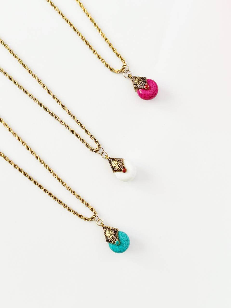 Scopri la magia della collezione Indu, dove l’eleganza contemporanea incontra lo stile etnico. Questa straordinaria collana è realizzata in acciaio dorato di alta qualità, garantendo una lucentezza duratura e una resistenza eccezionale. Il design raffinato è impreziosito da una goccia colorata, disponibile nelle affascinanti tonalità del rosso, fucsia e bianco, perfetta per ogni occasione e outfit.