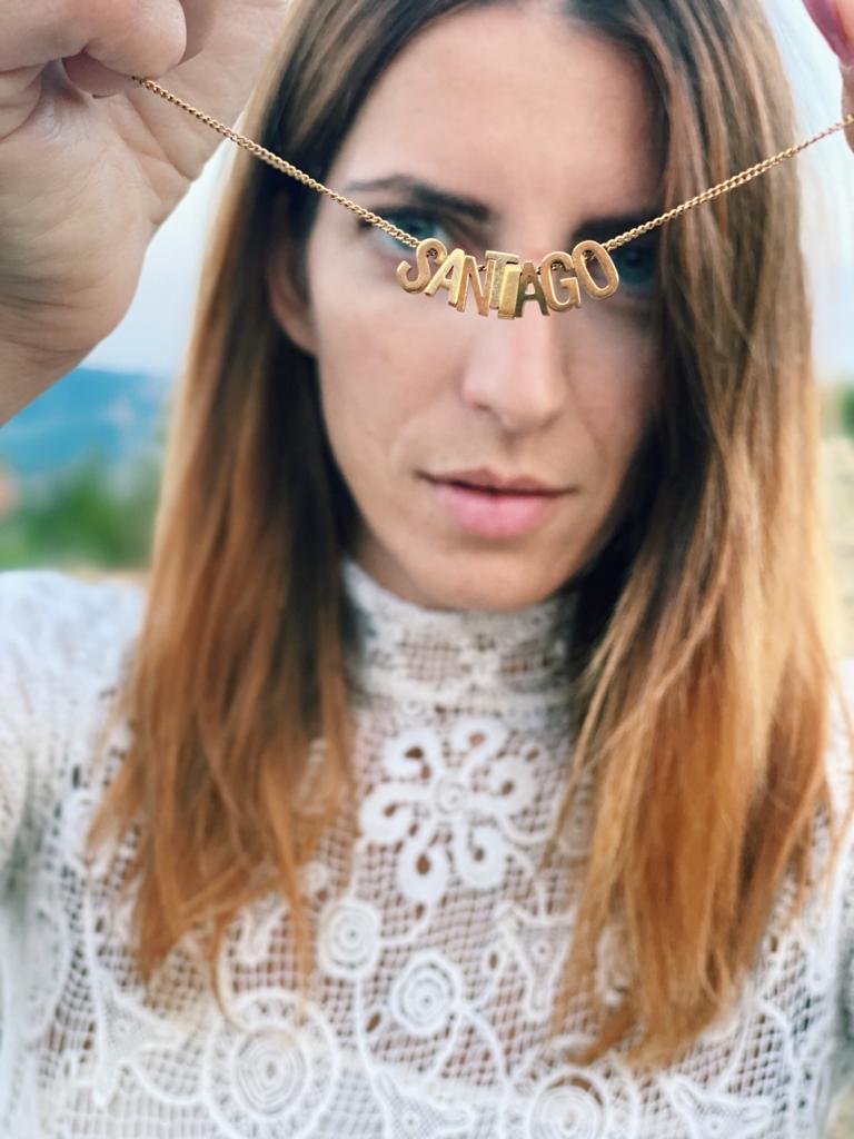 Collana in acciaio placcato oro. Lettere pendenti in acciaio placcato oro. Misura 46 cm.