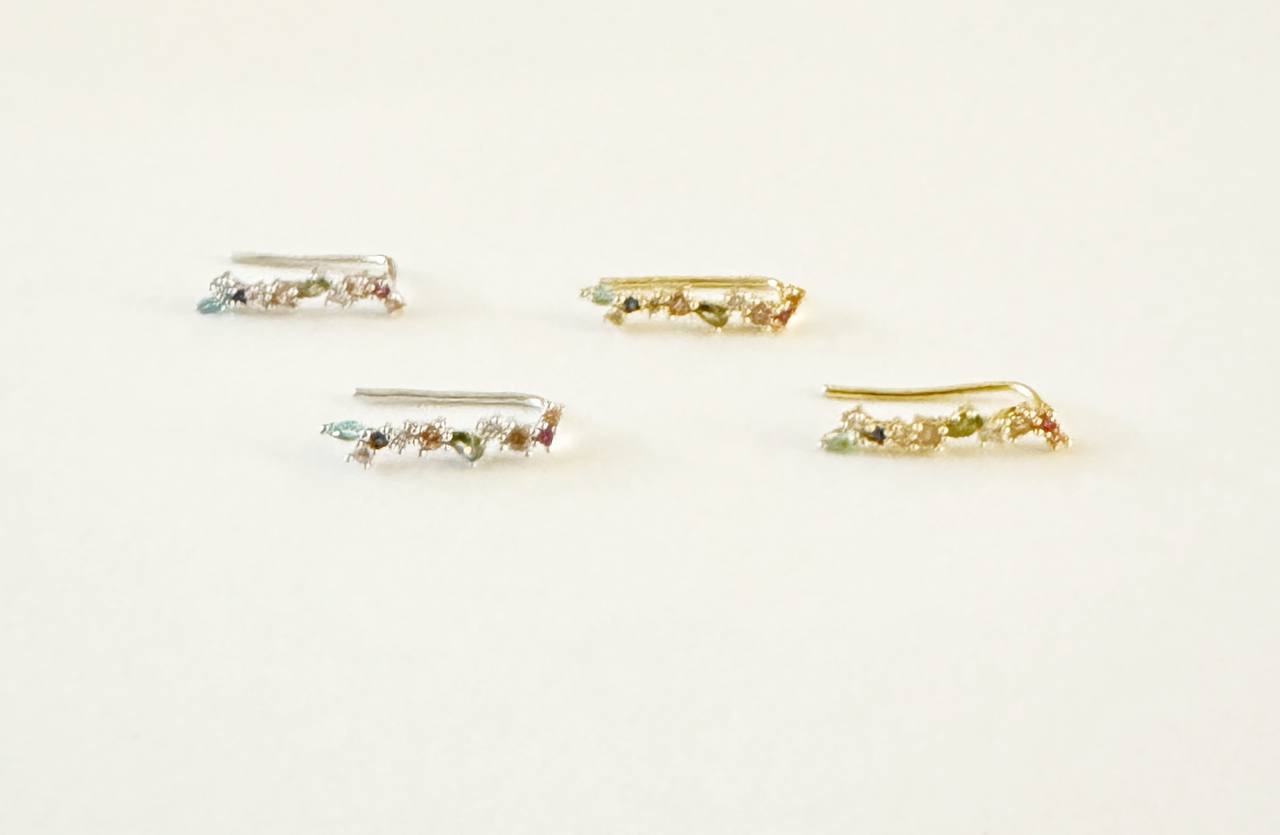 Gli orecchini Carla sono una celebrazione della bellezza naturale e del design minimalista. Realizzati in metallo di alta qualità, sono impreziositi da piccole gemme multicolori che aggiungono un tocco di vivacità al tuo look. Disponibili in due varianti – dorati per un effetto caldo e solare, e argentati per un’eleganza fresca e moderna – gli orecchini Carla sono perfetti per chi cerca raffinatezza e versatilità.