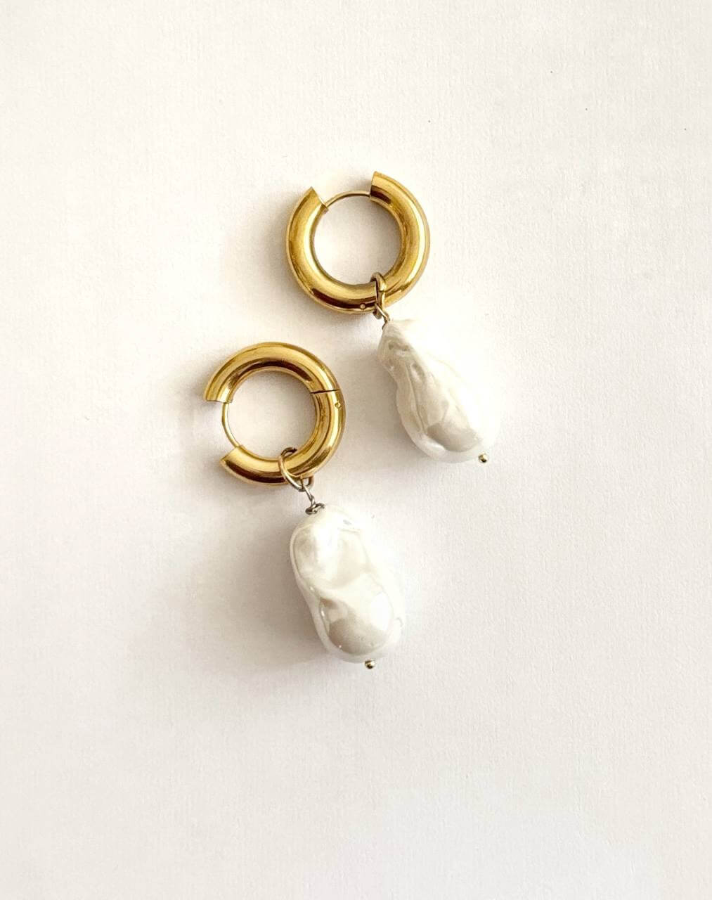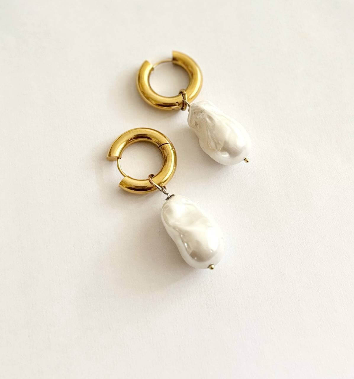 Realizzati in acciaio inossidabile dorato, presentano due cerchi intrecciati che donano movimento e un tocco contemporaneo. A completare il design, due perle di fiume dal fascino unico, perfette per chi cerca accessori esclusivi e senza tempo.