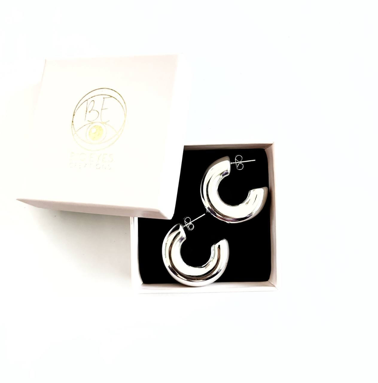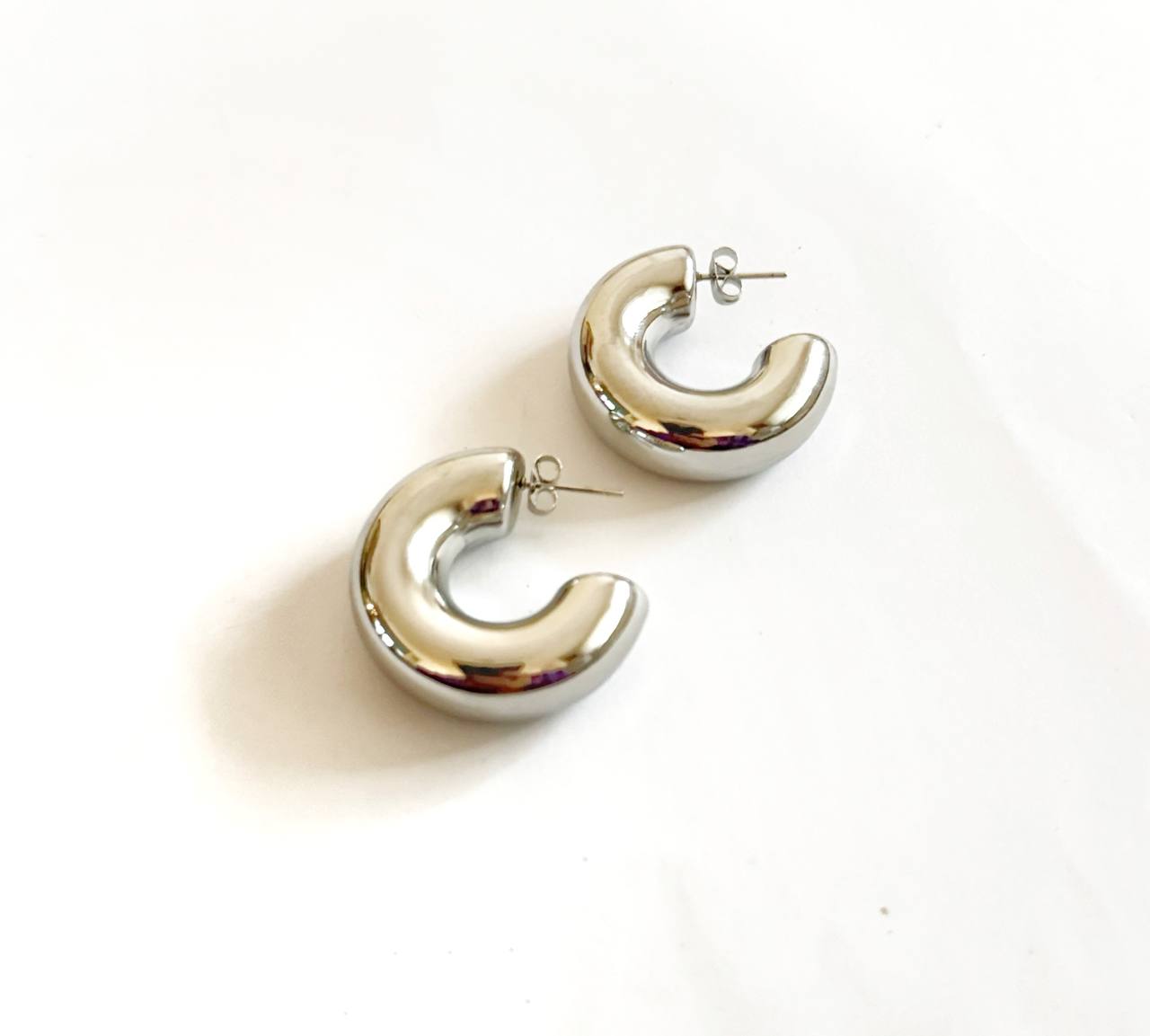 Realizzati in acciaio inossidabile argentato di alta qualità, questi orecchini con una delicata forma a semicerchio sono sinonimo di eleganza senza tempo. La loro finitura lucida riflette la luce in modo sofisticato, catturando l’attenzione con discrezione e raffinatezza.