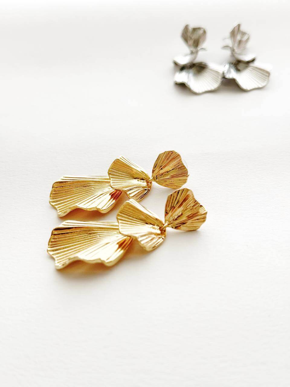 Design: Orecchini lunghi con finitura dorata o argentata